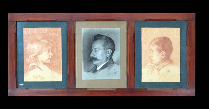Trittico con i ritratti di Edoardo Alfano e dei figli Lea ed Ennio