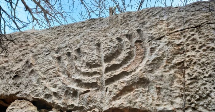 La particolarità di uno di questi è una sorta di testimonianza culturale e religiosa di un tempo lontano. Infatti sopra l’ingresso di questo ipogeo, inciso nella roccia, compare un simbolo molto noto: la menorah, il candelabro a sette braccia, simbolo della tradizione ebraica.