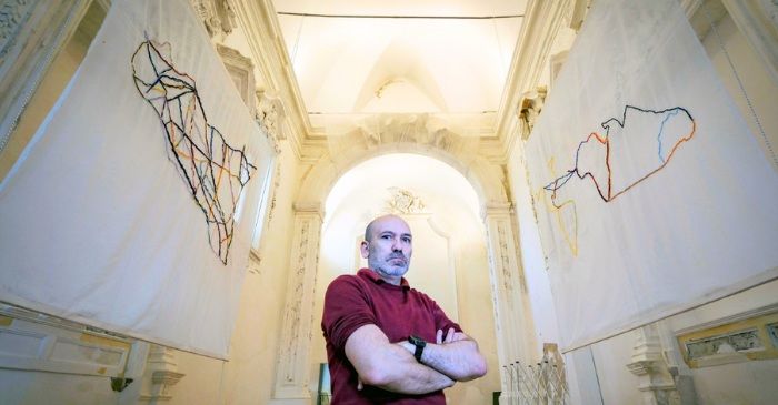 Nell’aula superiore la Sicilia diventa un’installazione di fili di lana colorati che tessono legami e memorie che si stagliano sulla navata bianca dell'ex chiesa e animano lo spazio legando idealmente l'Isola al resto del mondo.