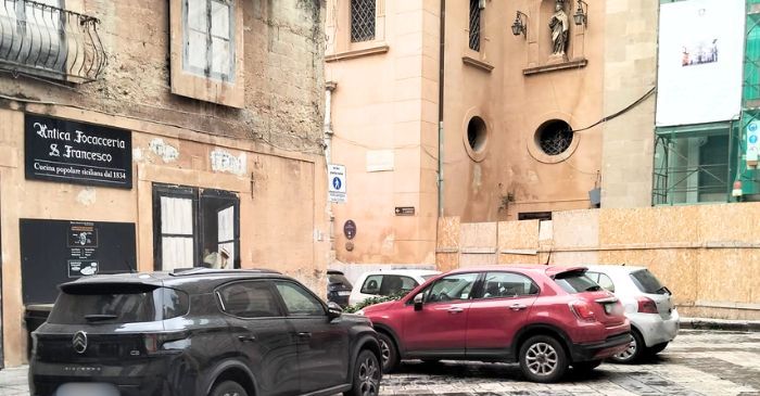 Auto nell'area pedonale di piazza San Francesco a Palermo (foto di Tiziana D'Alessandro)