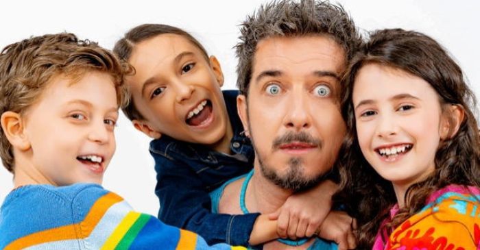 Paolo Ruffini coi bimbi del podcast "Babysitter"